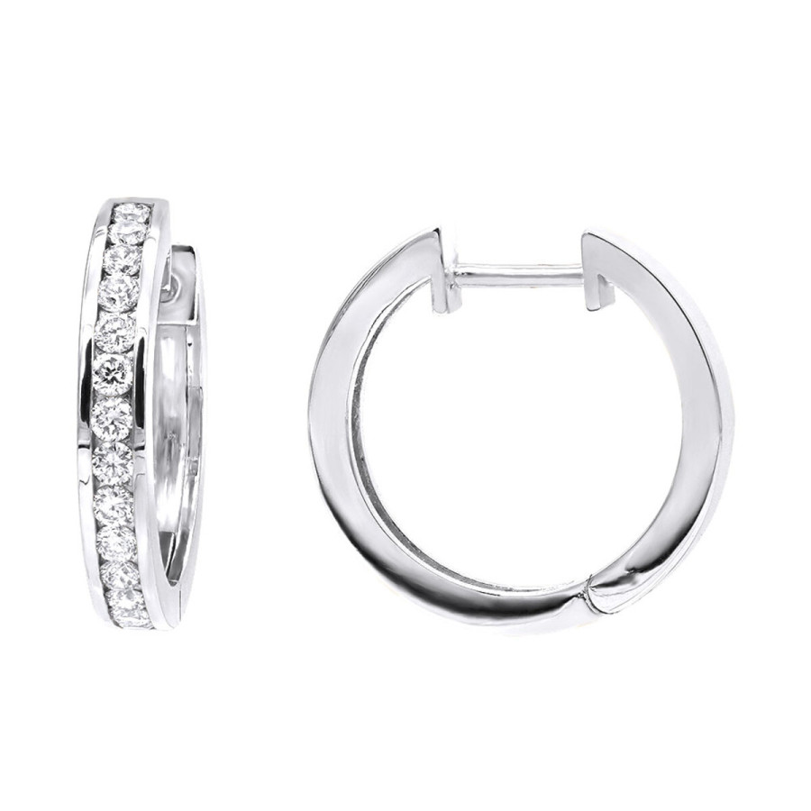 1/2 inch Classic Huggie Hoop Earrings 14k Gold with Round Diamonds 1 Carat