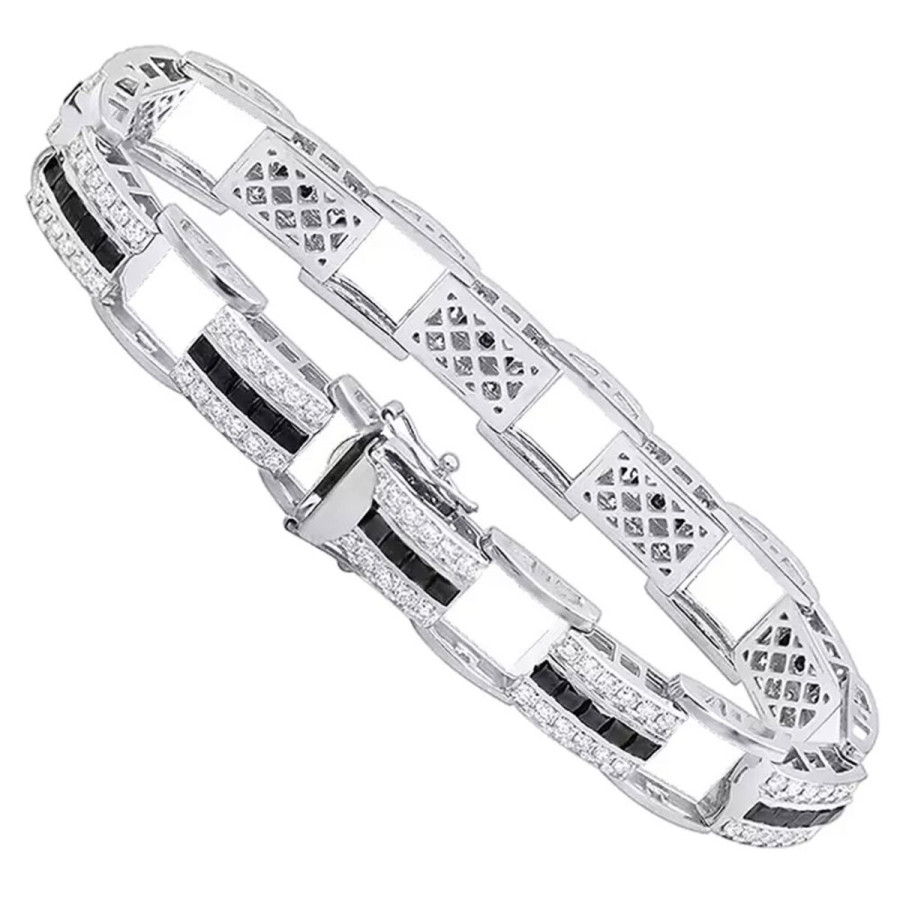 Luxurman White and Black Diamond Tennis Bracelet For Men in 10k Gold 8.5ct